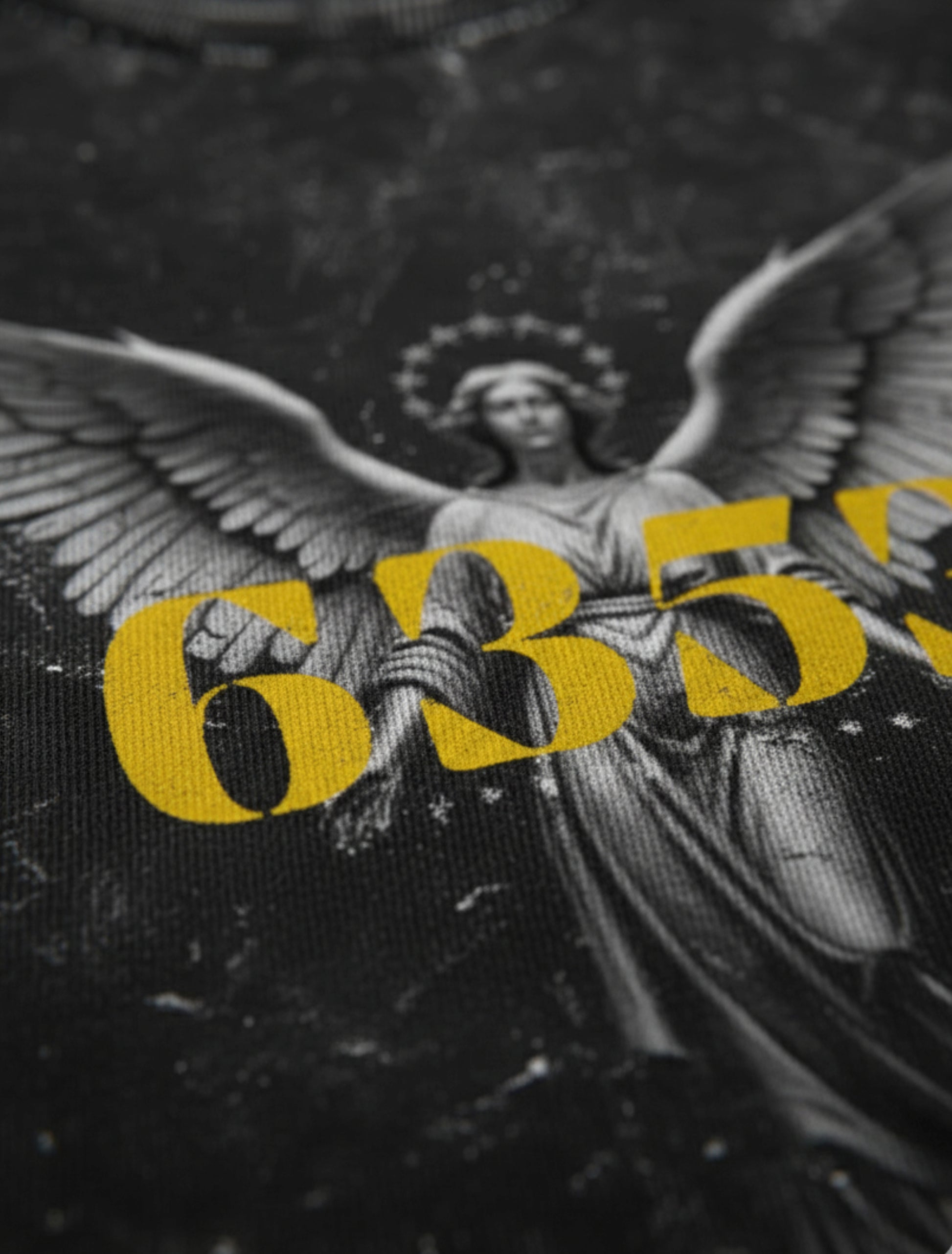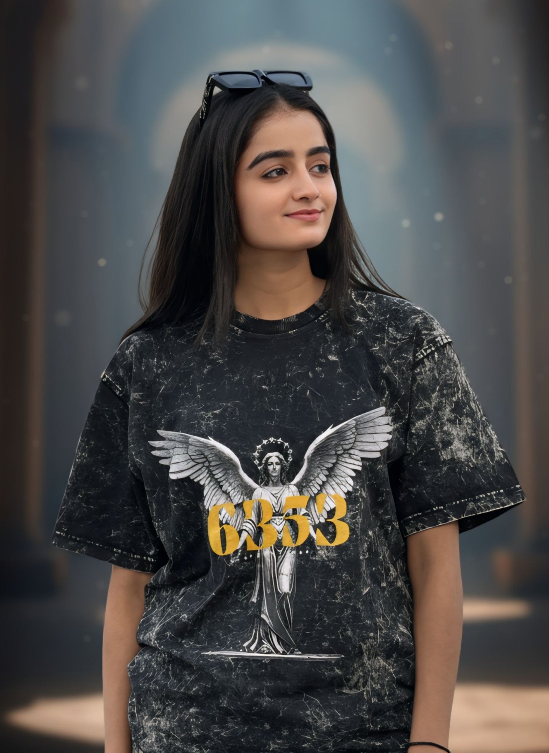 This tee comes with a unique Angel print πͺ½ on the front and the signature brand number 6353 β adding an authentic streetwear identity.