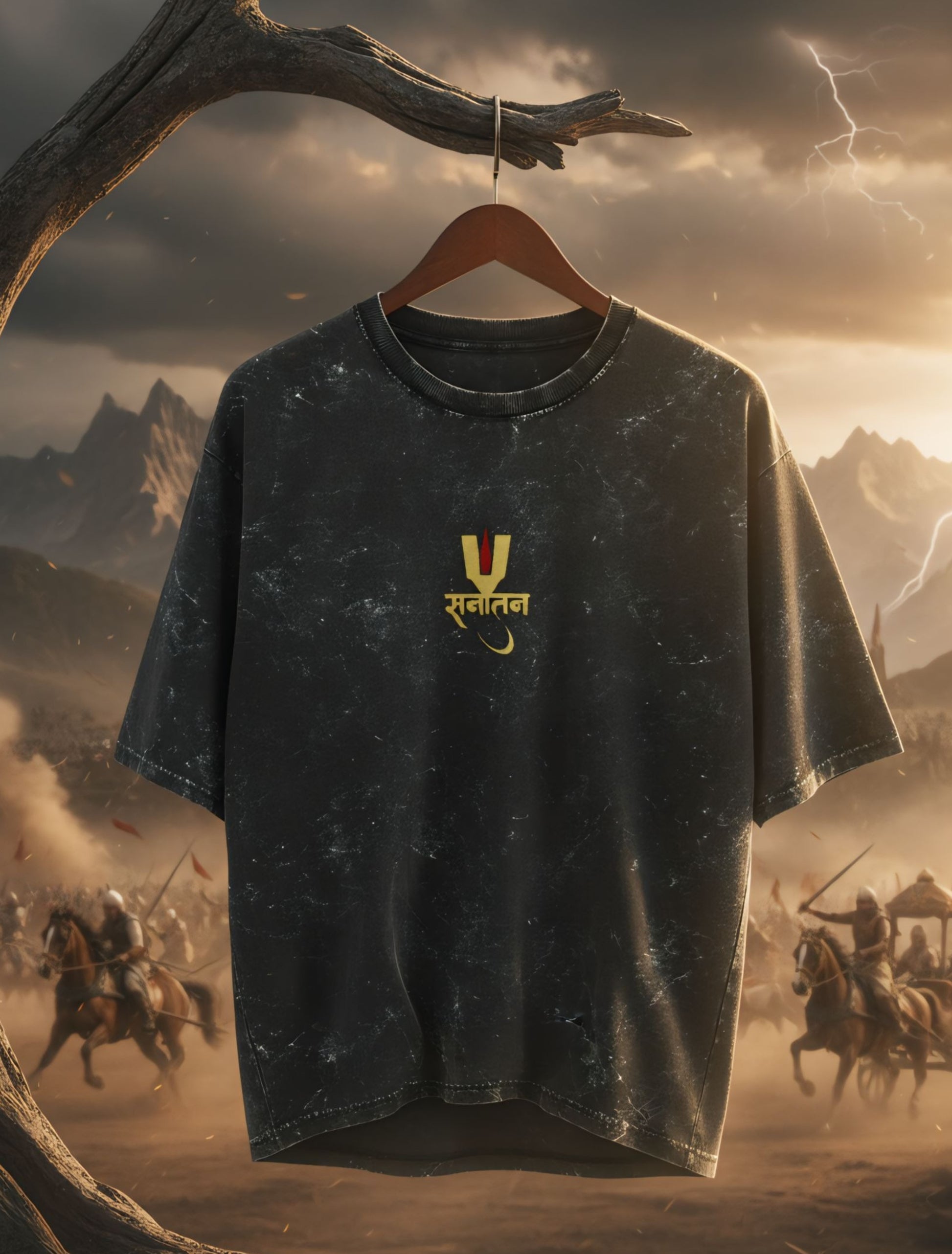 Sanatan Vibe Acid-Washed Oversized Tee For Men