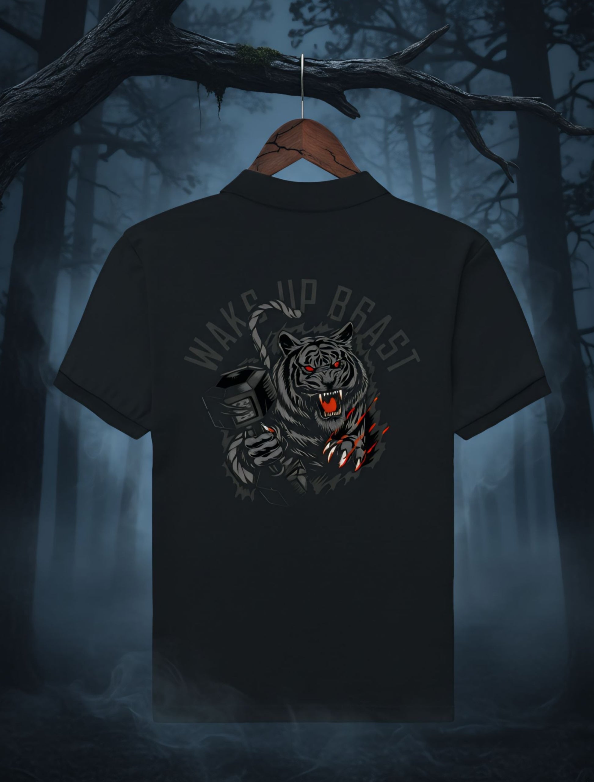 'Wake Up Beast' - Tiger Print Polo T-shirt For Men